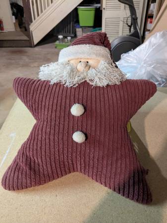 Sold as a lot Santa Pillow- Soft Cordaroy Santa Tissue Box Holder- Hand painted wooden Snow Globe