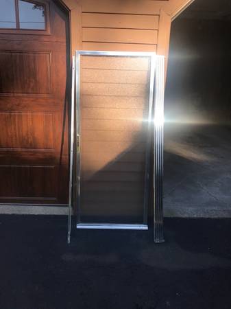 Frosted glass Pivot and strike jam Assembled 62” X 22 1/4” Excellent condition Cash sale Local pickup