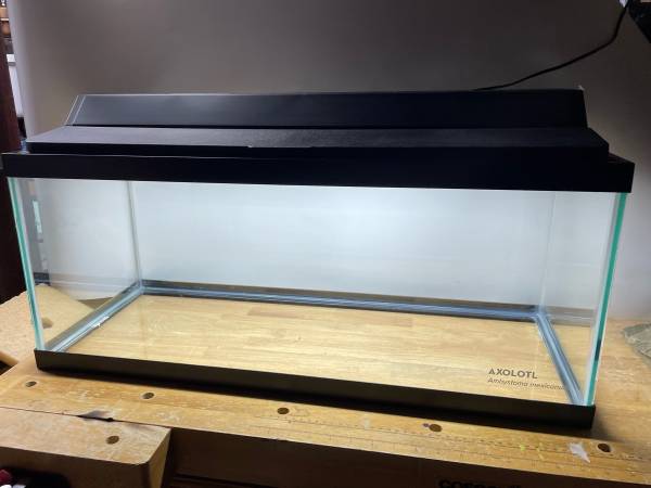 Water tight tank with Aqueon 30” fluorescent light. I hardly used the light. Has “Axolotl” decal on front, can be scraped off. Clean tank. Also have various rocks, small pump, if interested.