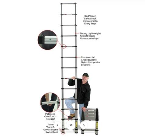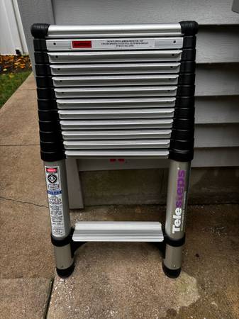 Telesteps Model 1600 EP Telescoping Extension Ladder 12.5 ft Height – 16 ft Reach, 3.375” Wide Comfort Steps, One-Touch Auto Extension & Retraction, Pivoting Silicone Feet for Stability, Type 1A – 300 lb Load Capacity. Used a handful of times in excellent condition selling because i am to old to climb a ladder, my loss your gain selling for 500.00 on Amazon. Contact Jerry show contact info