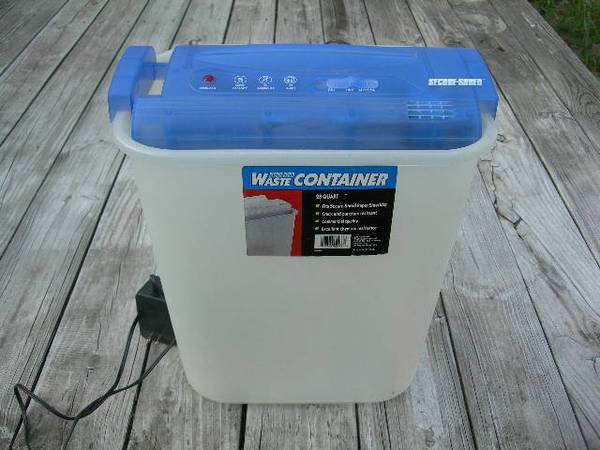 The Shredder is adjustable for different size trash pail. The trash pail does have some cracks in the bottom, but is still usable and has been repaired with some tape.