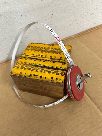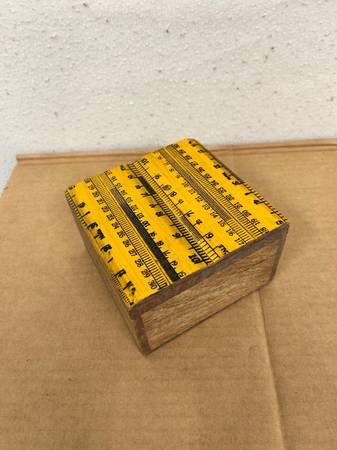 Tape measure that’s fifty feet long and a neat wooden storage container with ruler pieces added to decorate its top. What else can I say but look at the pics and imagine someone who would think it...