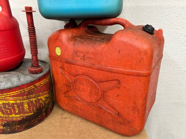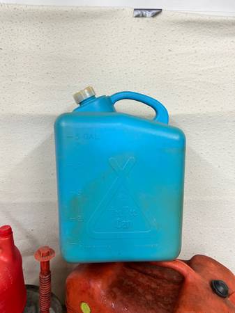 Cans , bottles containers of various capacities. Included 1 1/4 gal. , 2 1/2 gal. , 5 gal. and 6 gal. Capacitor items.