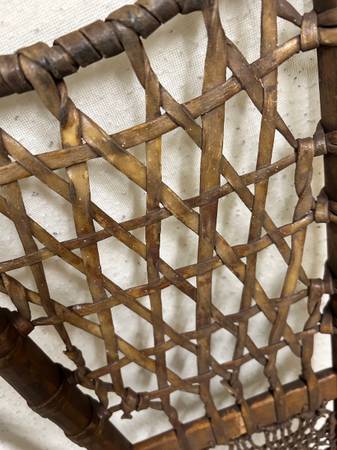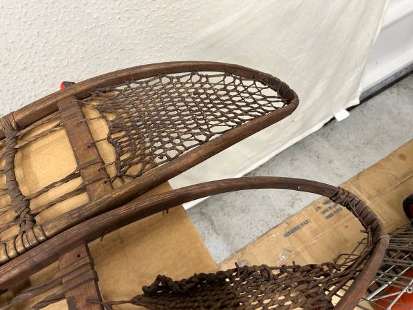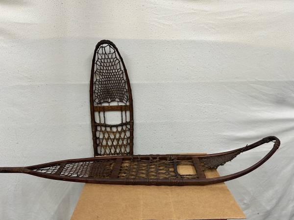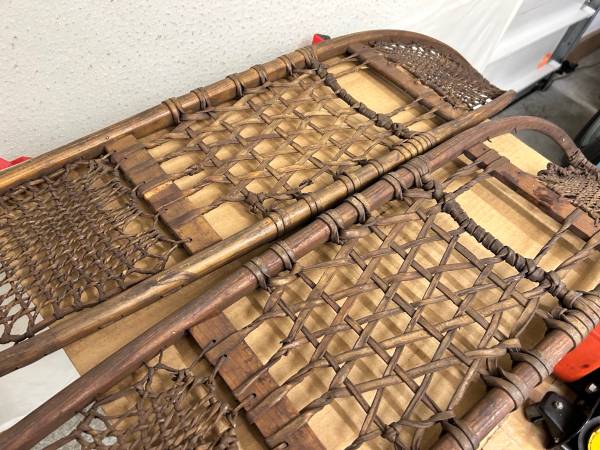 These were in very long term storage and I’ve only dry wiped a bit. I’m certain that a light wet cleaning will reveal the magnificent build quality further. The frames are in excellent condition (ash wood I believe ) and the lacings of moose, deer, caribou and later cowhide can easily be repaired with rawhide available online.