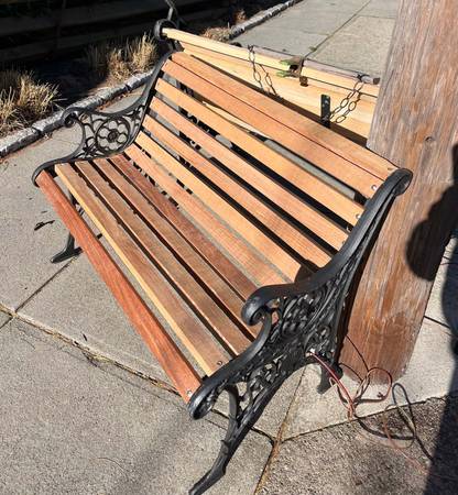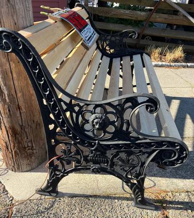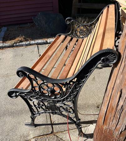 Reconditioned 48 inch cast iron park bench, newly sanded, primed, painted, new slats installed. Call Ray on his mobile @ . four zero one - two five five - one zero two zero.