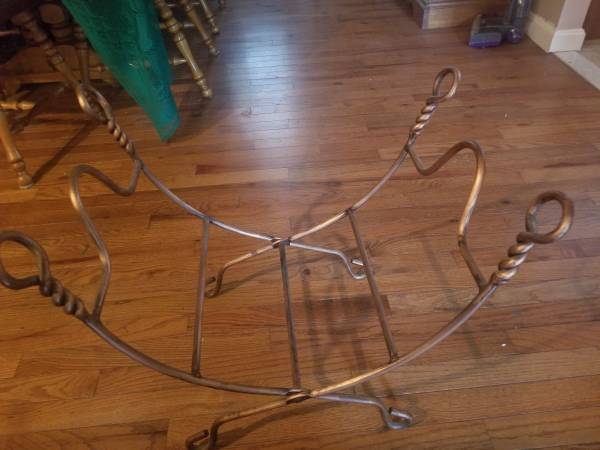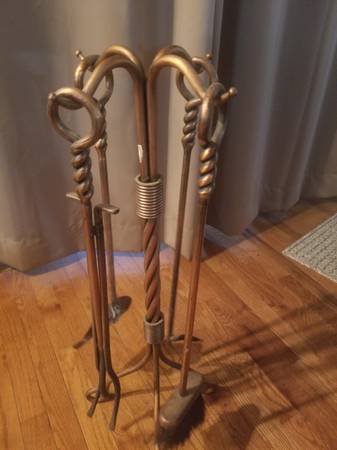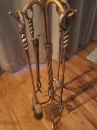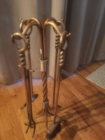 Fireplace set 5 piece antique copper finish. Including brush,shovel,poker,log grabber and stand. Weighs about 30 lbs. Also includes the following 1 wrought iron log holder that will hold numerous...