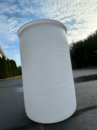 For sale a 55 gallons plastic barrel . The barrel is very sturdy built with very thick walls . We used the barrel to hold liquid soap . This barrel is not made for storing drinking water or any other food related products in it . This can be used for storing a lot of different liquids from rain water to oil or other chemicals . If interested reply to this ad or for a fast reply send me a text at show contact info