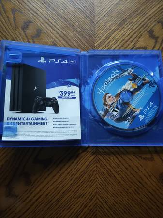 Horizon Zero Dawn for PlayStation 4. Complete with case, disc, and artwork insert. Disc tested and fully functional. Case has sticker residue on front cover (see photos)