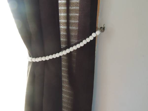 Handmade brand new solid wood beaded curtain ties. Curtain ties come in white or tan beige natural wood color. Beads go all the way around curtain. Each set contains 2 separate strands for one...