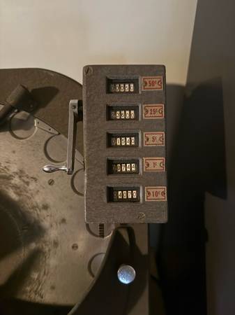 1950's Satco Coin Sorter/Counter, mfg by Sattley Co., Detroit, MI, counts 1¢, 5¢, 10¢, 25¢ and 50¢ coins, all 5 trays present, in working condition, very heavy! Coin machine is in good working order...