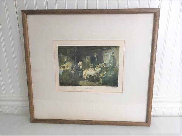 Original framed and matted print of 1933 painting “The Doctor” by famous Artist Joseph Tomanek. This print was reproduced as an advertisement by Wyeth Pharmaceuticals around 1950. Fantastic gift as for the physician in your life or as a wall art in a waiting room. Image measures 12.5” x9.5” frame measures 21”x23” inches.