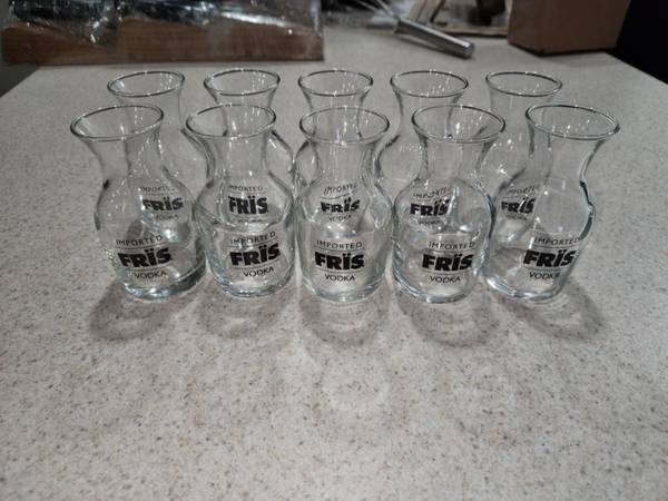 Have some Fris Vodka shot glasses, they look like mini carafes, set of 10. Call Eric, leave a msg, I will return your call. No Texts and I only use Craigslist mail relay.