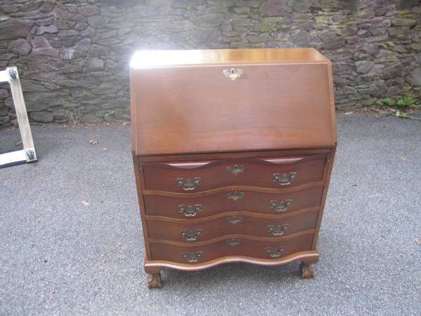 Cherry drop-down secretary desk with keys. Dovetail drawer construction. $150 cash only. 32" wide x 40" high x 18" deep. 1549