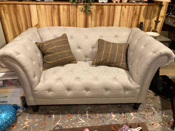 Love seat Comfortable Other than a couple scuffs on the fabric it’s in very goodcondition
