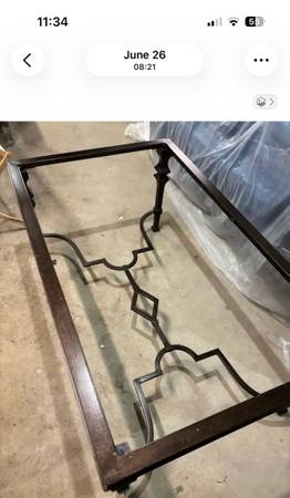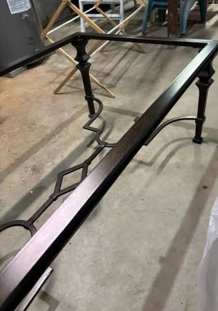 Very nice glass top coffee table. 50inx30in metal table with removable glass top. In overall good shape with some very minor scratches on the glass top and normal wear and tear on frame (reason for the price). Was a nice coffee table for us! The glass is removable so it makes it very easy to transport this table. I can help move into your vehicle in 2 pieces!