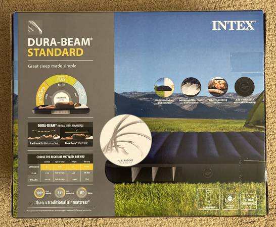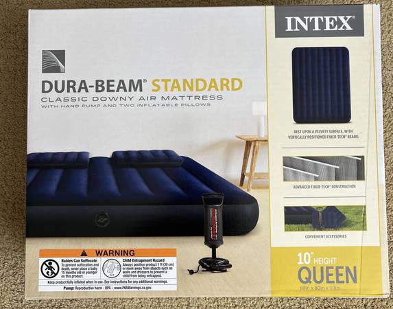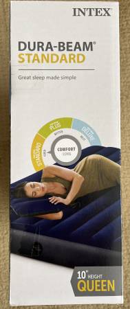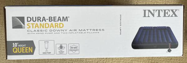 Intex Dura-Beam Standard Classic Downy Air Mattress - Queen - New in box With hand pump and 2 inflatable pillows 10" height 60" x 80" Max weight capacity 300 lbs $24. Cash only