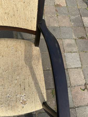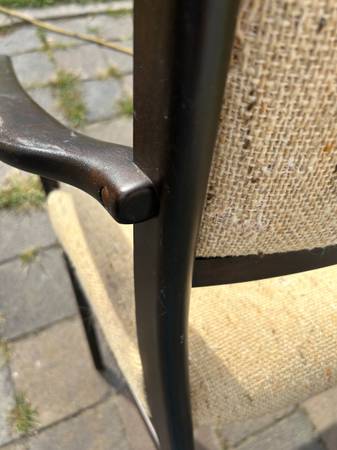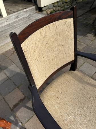Single vintage Danish Rosewood armchair. It is not marked and I do not know the maker. Piece needs new upholstery but is otherwise in very good condition. One of the small plugs has been chipped. Finish has a few scuffs and scratches but overall very good condition.