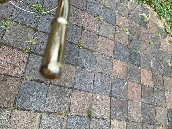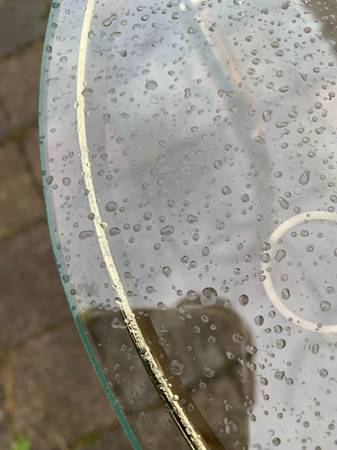 Vintage glass and brass faux bamboo plant stand. Piece is in good used condition. There are two chips to the edge of the glass. It's just a small glass circle so pretty easy to replace. The brass is excellent. One of the small caps on the feet is missing. Aside from the glass piece is very good.