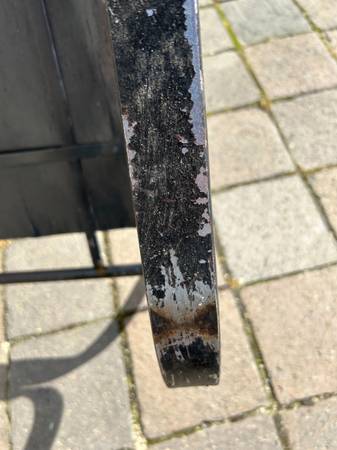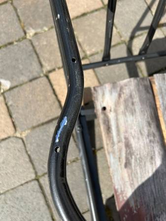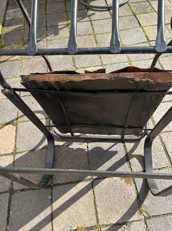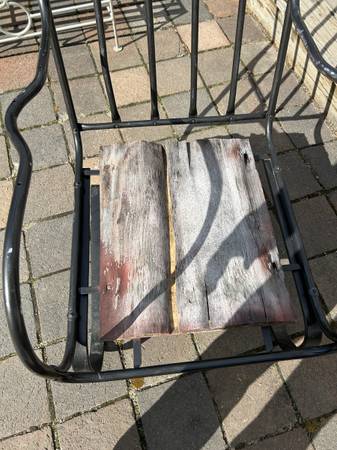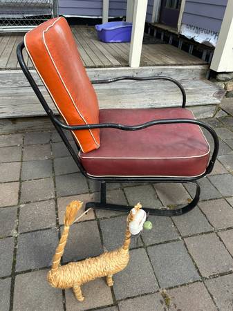 Unique fixer opportunity Kem Weber for Lloyd Loom chrome cantilever chair. Unfortunately, it has been painted. The chrome I can see under the peeled paint is pretty good, but obviously it's a crap shoot. I assume only one of these cushions is original, but possibly both. You will need to fashion some new armrests unless you have a parts chair. I don't think the peeled plywood is original either so maybe just remove it. It needs some cleaning up but well worth the effort.
