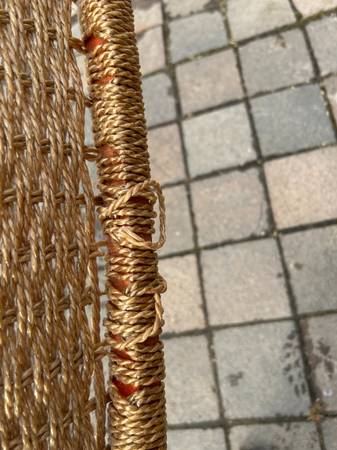 Nesting bench in the style of Gio Ponti. Obviously needs some work and is being sold as is. Previous owner painted or began to paint this. There are a few broken cords, perhaps could be stapled underneath. Structurally sound just needs that paint situation corrected. Overall piece is in pretty good condition.
