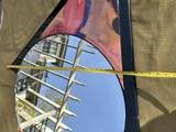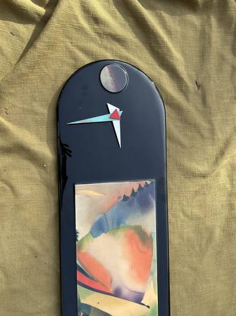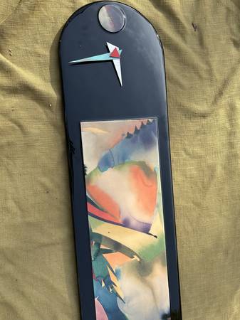 Post Modern / Memphis style wall clock. I put a battery in and the hands move, but I think they are loose and don't keep time. It appears a pretty simple mechanism to fix. Piece is in very good condition. There are few spots where the raised pieces are a little loose. The laminate has a few scuffs and scratches, but overall very good. I have the matching mirror I will be listing also.