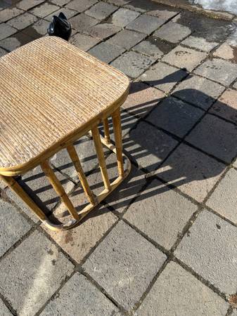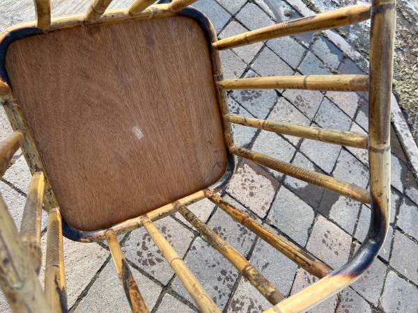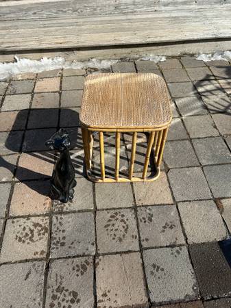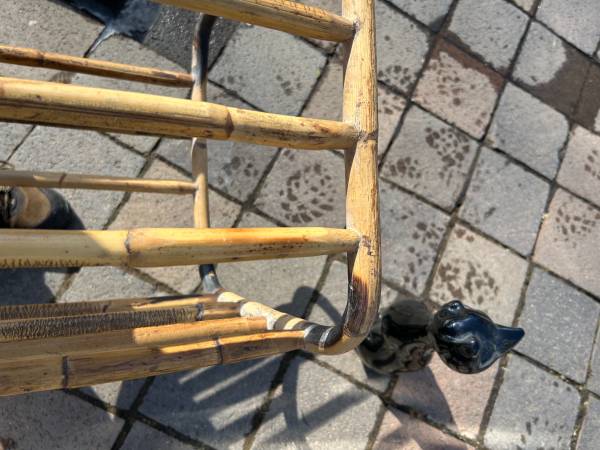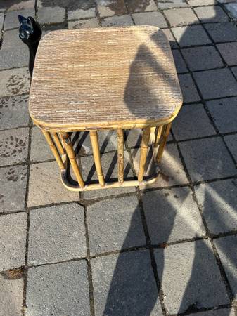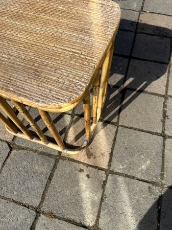 I respond to all legitimate e-mails so check your spam folder if you haven't heard from me. Vintage charred bamboo side table. Piece is in very good used condition. Top is a little scuffed up but...