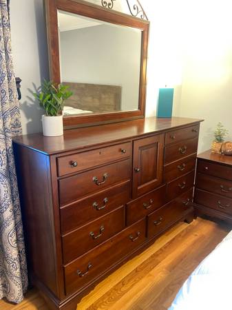 Up for grabs is a gently used. Dresser includes Mirror I purchased that this from There is a spot on top that may come off when cleaned This is truly a statement piece in very good condition. I am...