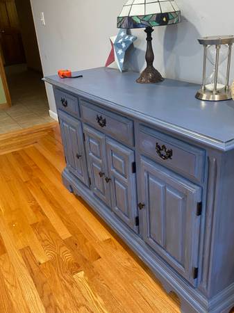 Up for Grabs This is a statement piece made by Cochran I chalk-painted this to distressed the color and updated it to black hardware It’s a beautiful blue .. Has plenty of doors for storage and a...