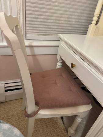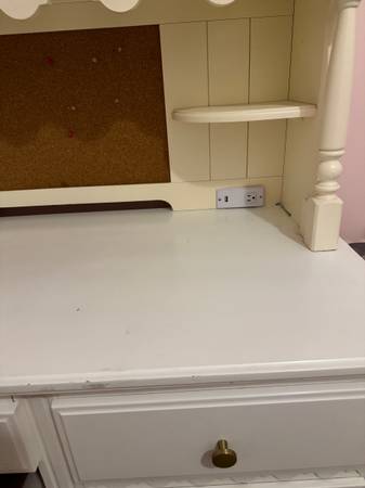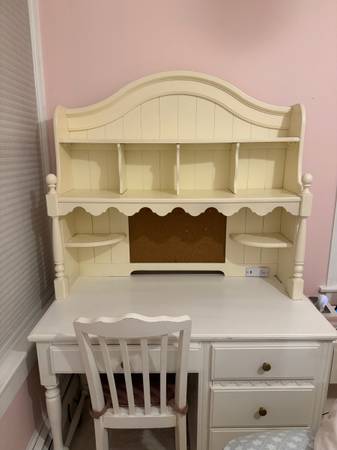 Beautiful white youth/children desk and hutch. Hutch has usb and outlet for charging. All wood construction. In good condition. Smoke free, pet free home. Please note chair is no longer available. Buy them separately for 50 dollars each or together. Hutch is in almost new condition.
