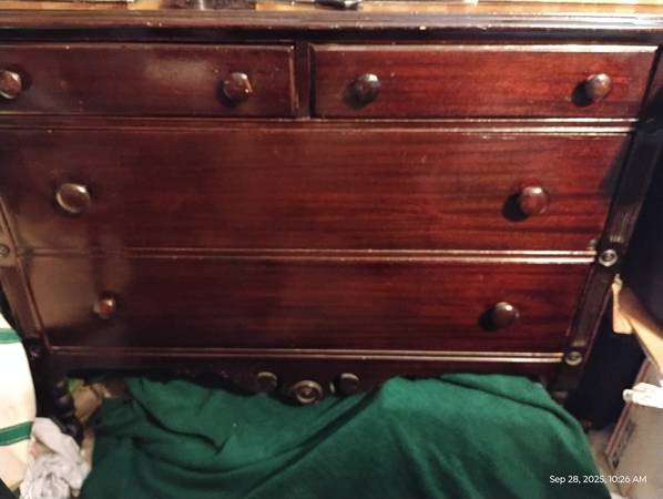 3 Drawer Dresser. 42 wide, 24 deep, 36 tall. Solid, drawers work well. Dovetailed drawers. Well made. Has wheels too. Will help load but no delivery. $40 firm