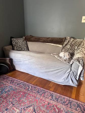 Free couch and couch cover to whoever can come and get it! It turns into a bed so super convenient