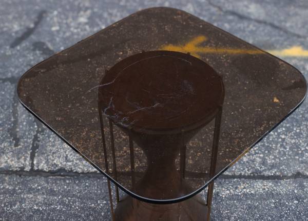 IMPORTANT CONDITION NOTES: Glass is marked/scratched from what is most likely plants/pots sitting on them for a long time (photos 14 and 15). Bases have some discoloration on them (photo 6 and 12). Brass railings - Many of them are loose and come off easily. It looks like someone tried to glue some of them back on. I avoid doing furniture repair because I am not a professional so I have not attempted to secure them back. So please be aware. NO RETURNS so please message before buying if you have any further questions or concerns.