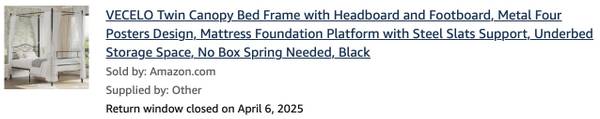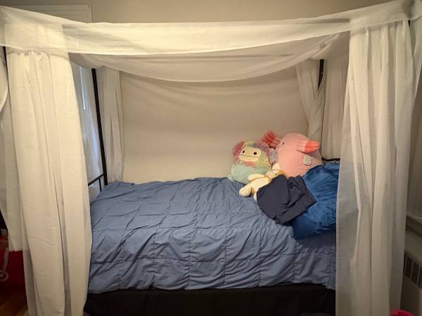 I’m moving very soon, so want to sell ASAP. Selling canopy bed frame (owned for a few months) and 14in twin mattress (owned for a year)