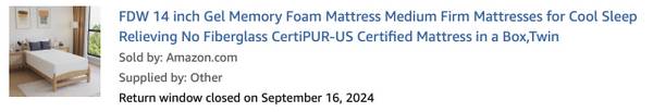 ***for mattress, you must have another person with you to move from 3rd floor.