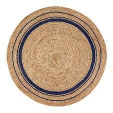 Description: Its dense weave and hardwearing design makes this item ideal for transitional spaces, nurseries, bedrooms, or breakfast nooks. Each braided twist and turn is designed to create the ultimate resilient surface so you won't have to tiptoe around your newest décor addition. Luminous natural golden fibers and a coastal-inspired blue stripe make this piece a true work of functional art.