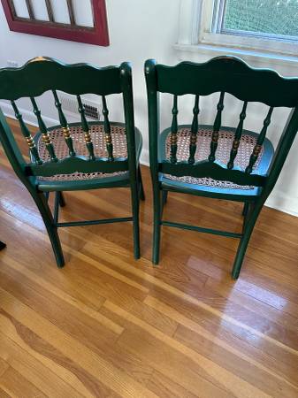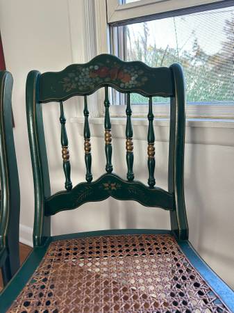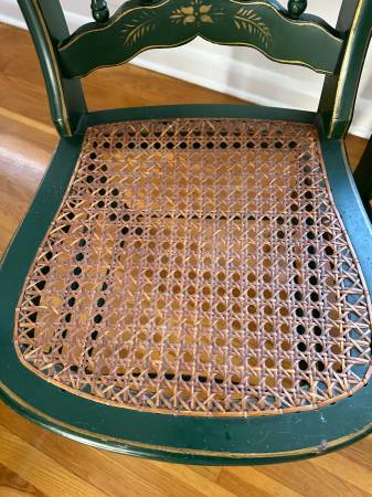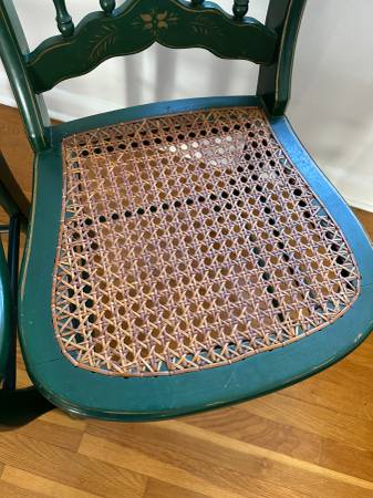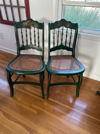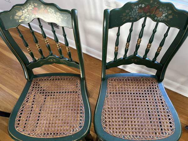 Hitchcock vintage chairs with cane seats and fruit stenciling. Cane seats are in great shape. $200 for both chairs.