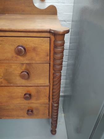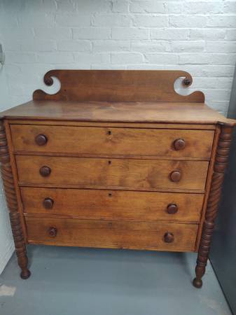 Antique Maple dresser warm honey tone with turned side rails. 4 drawers