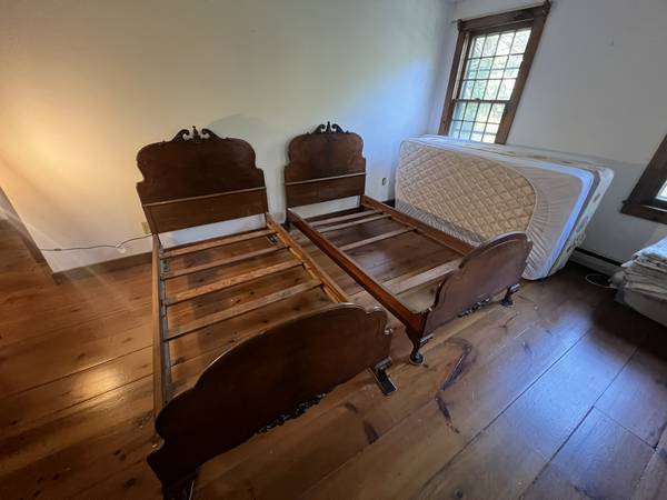 TWO MATCHING ANTIQUE TWIN / SINGLE SIZE BED FRAMES.