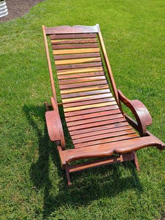 Gorgeous antique deck chair. Refinished, not by me. One position but very comfortable!