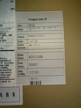 Dimension 34 H x 34 w x 41 d. light gray. Stationary chair. Excellent condition.