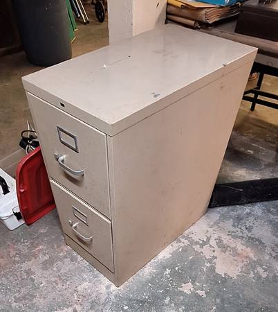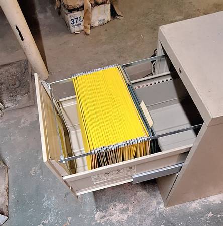 These are in fine shape, no rust, empty of any paperwork. The top drawer has file dividers (see photo) but the bottom drawer does not (see photo.) The drawers roll in and out smoothly. I cannot help you move these out of the cellar due to my age and condition. Pick up in Woonsocket at address shown.