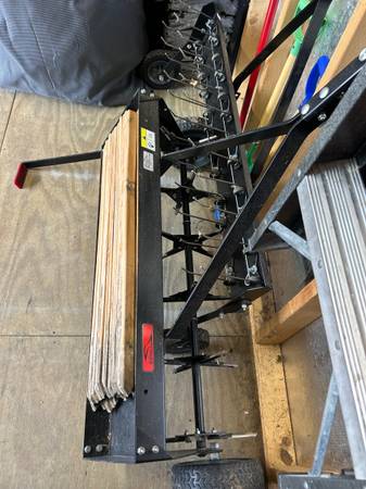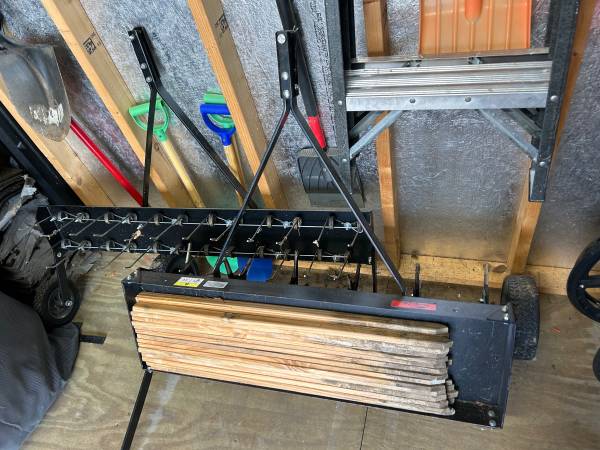 Like new Brinly tow behind Thatcher and Aerator. Used a few times and always left in shed. Both new would cost over $500.