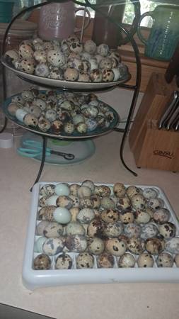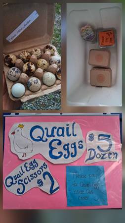 Fresh eating eggs collected daily from healthy quail. We feed our Quail a soy free formula supplemented with essential oils and veggies. We also provide them with fresh greens to supplement their diet. These are powerhouse eggs.
