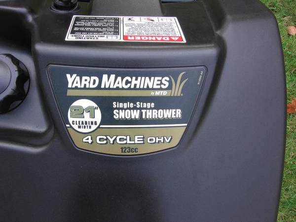 Yard Machines single stage snowblower. It uses straight gas you don't have to mix oil with the gas. Lite weight and easy to move around. Runs and works great. $100. No emails or text, phone calls...