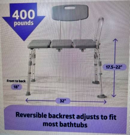 ~ Enter and exit the tub/shower with confidence. The tub transfer bench makes it easier and safer to get in and out of the tub: simply sit and slide over the bathtub's side to get in and enjoy the support of the generous seat and backrest while you shower.