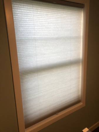 year old, nice condition,36”x 55", 2 blinds, all hardware. multi positions. call thank you.
