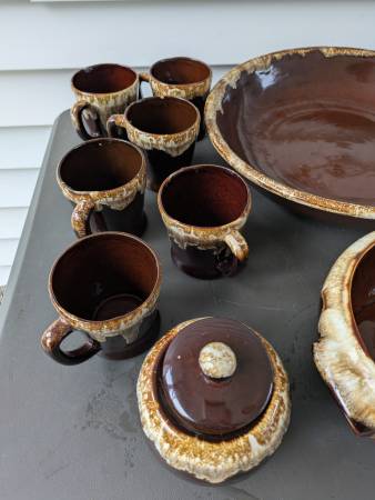 Beautiful collection of brown drip handmade pottery pieces from the 1950's and 60's.