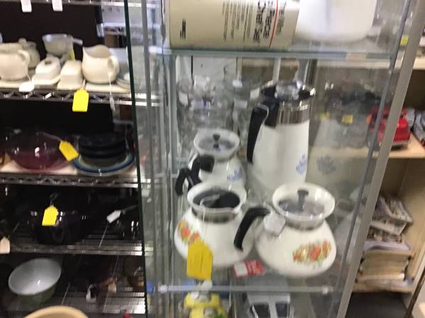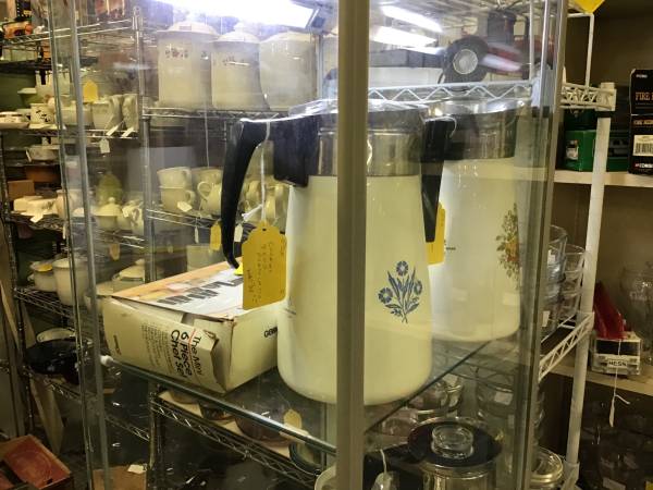 Pyrex & Corningware percolators that are shown in booth #150 at Antiques Alley, 711 Putnam Pike (Rt.44) Smithfield R.I. 02828. Hrs. Wednesday - Saturday 10 - 5, Sunday 11 - 5, Closed Monday...