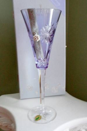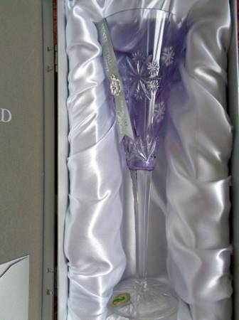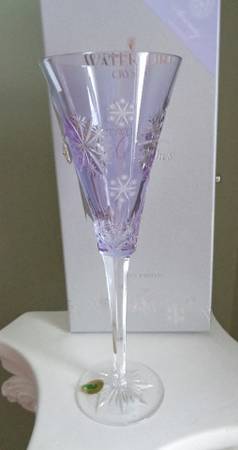 Stunning Waterford Crystal Lavender Flute in the ever so popular Snowflake Wishes Series. Wishes for Serenity is the Sixth Edition in the series. Standing a proud 10 3/8" tall, the stem is covered in snowflakes. Both cut and acid etched, they are magnificent. Brand New, It comes nestled in a white satin lined silver box. Retail is $200