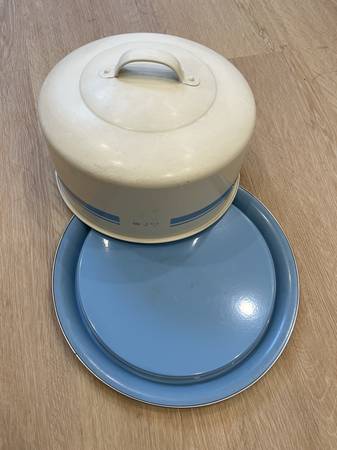 11" metal Cake plate with Dome cover, can be sealed tight to keep the cake moist.